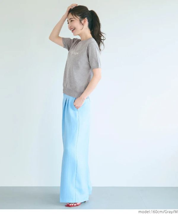 日本連線-Bonjour刺繡圓領短袖薄針織衫