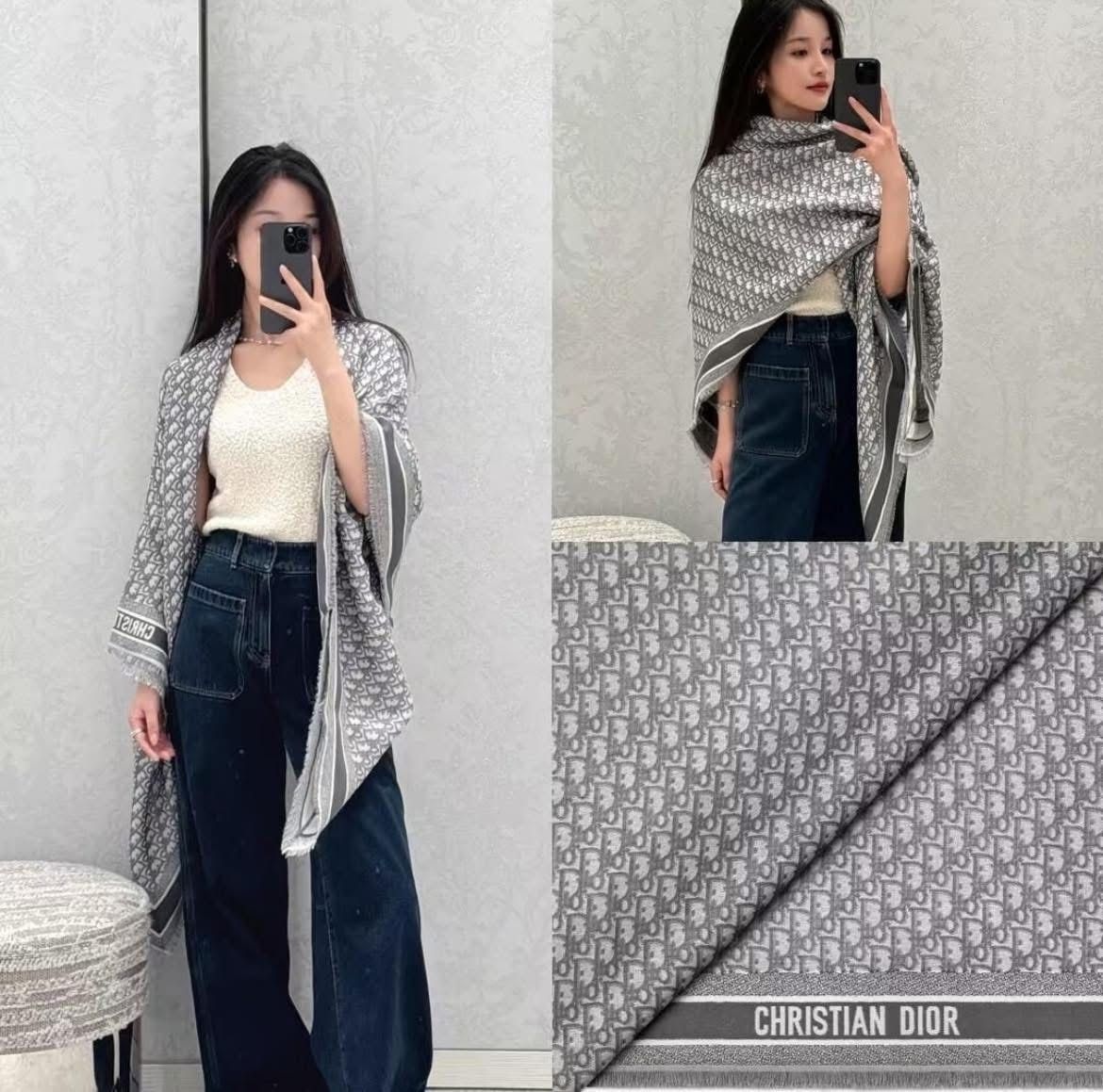 Dior 灰色老花披肩53%羊毛,31%絲綢,16%棉