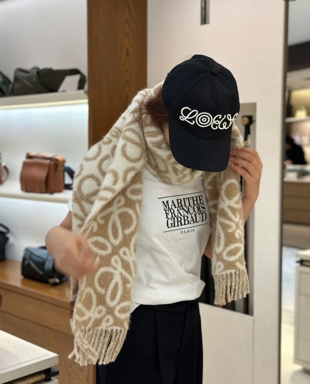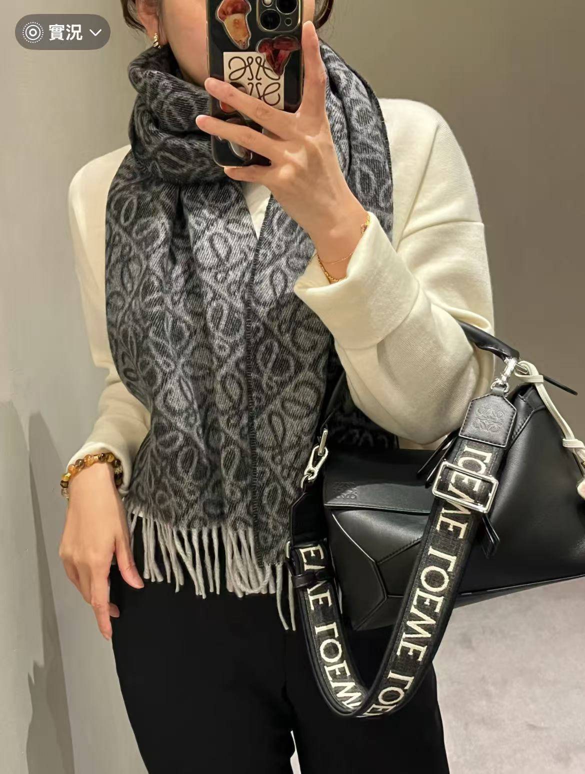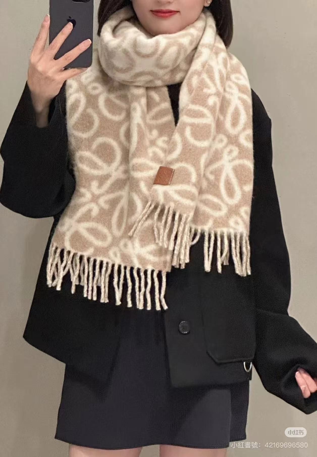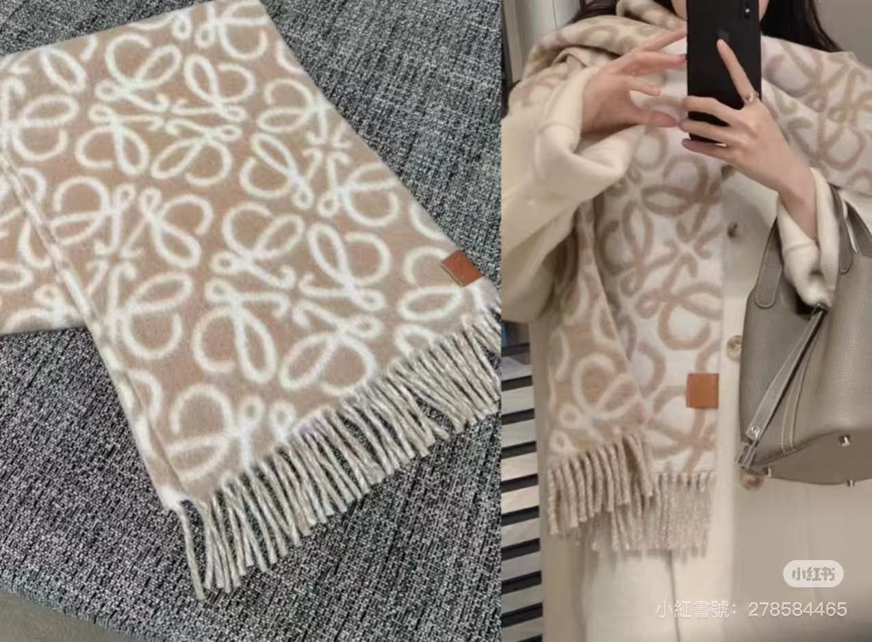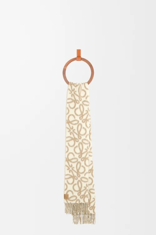 日本LOEWE Anagram 羊駝毛和羊毛大logo圍巾