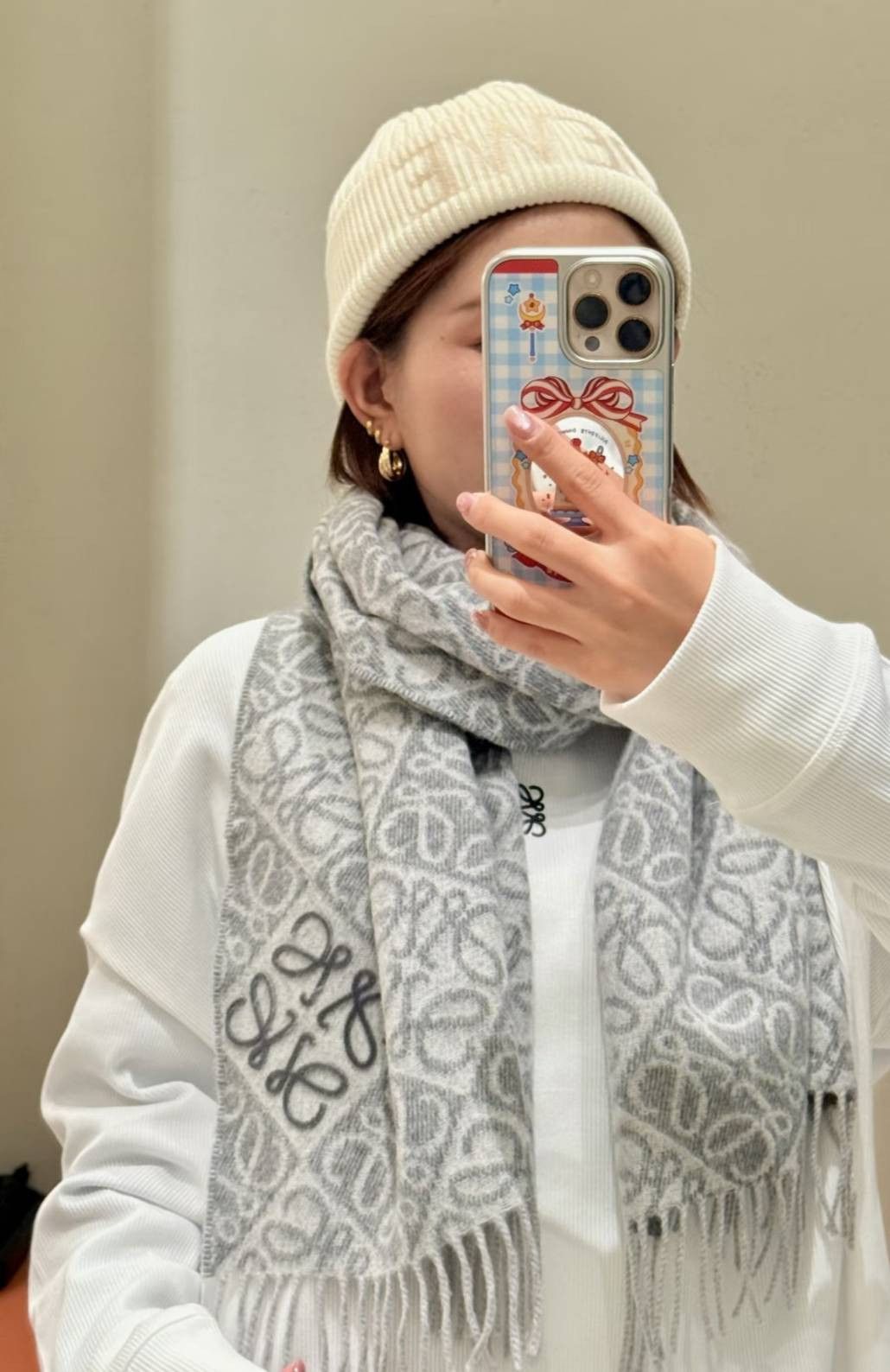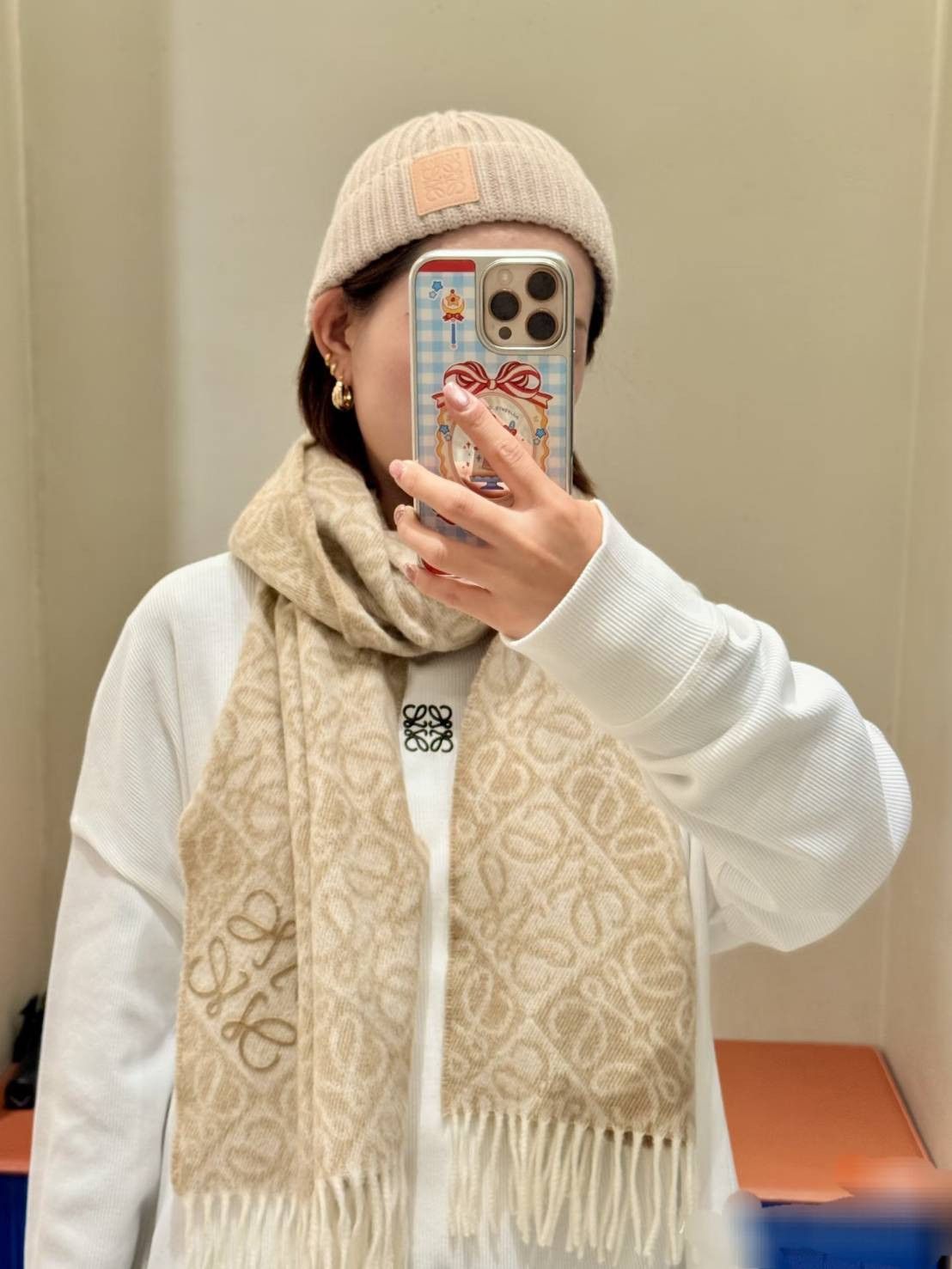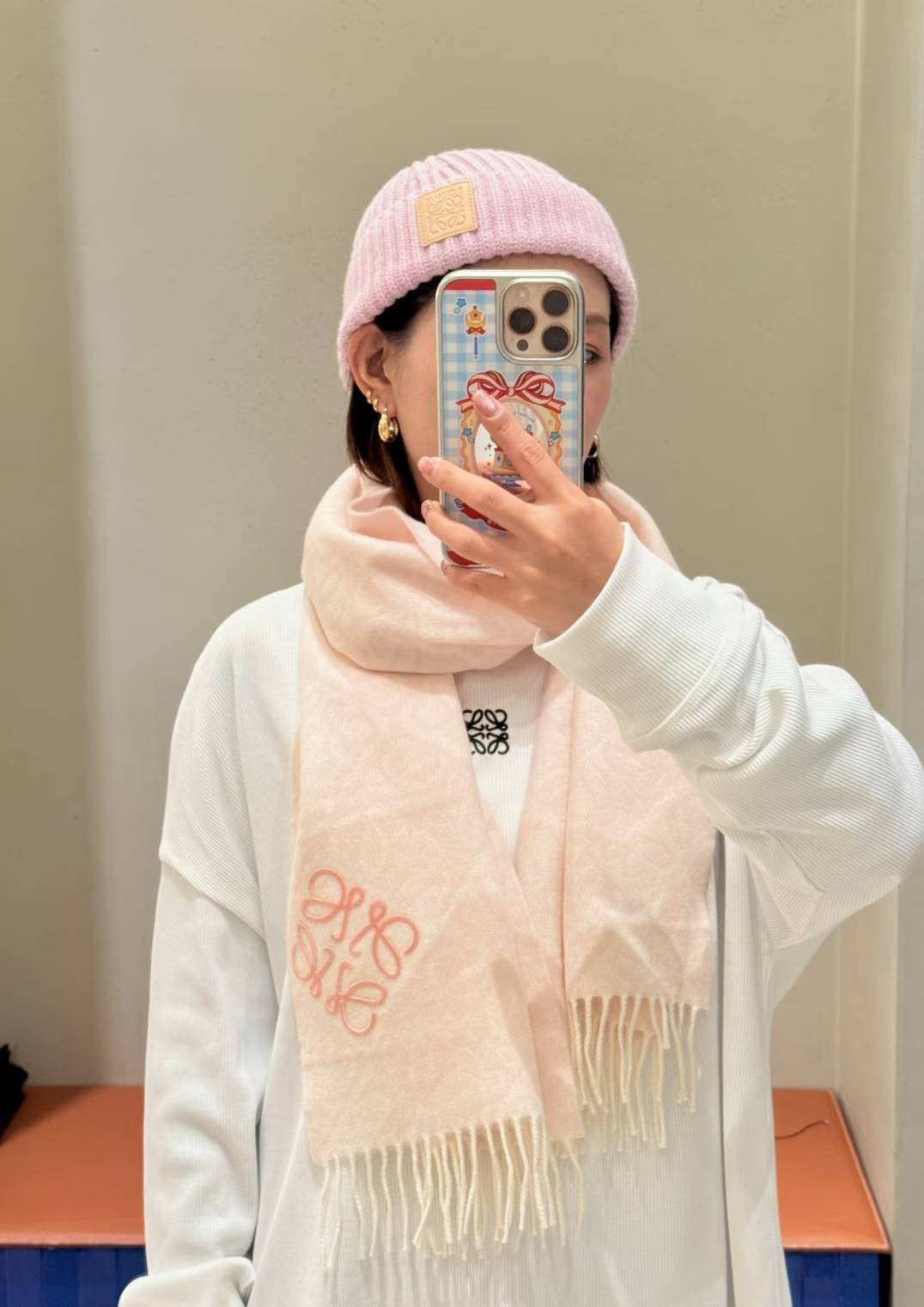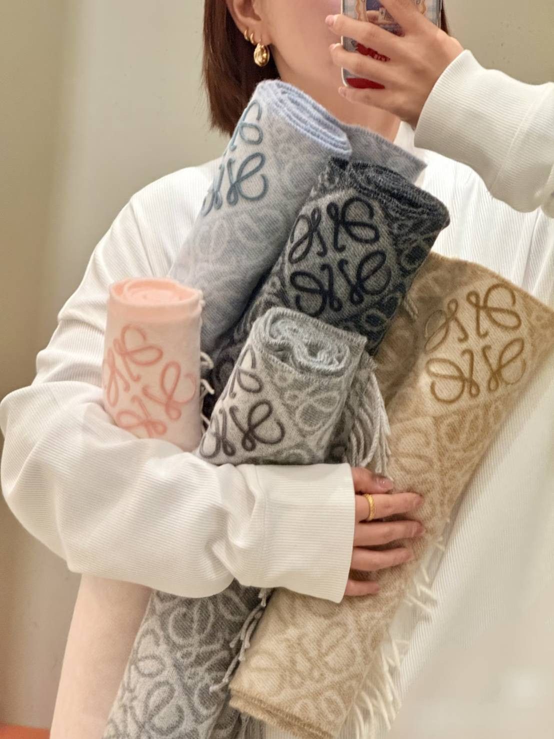 日本LOEWE Anagram浮雕圍巾