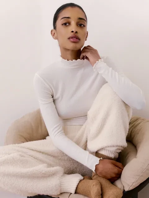 領口與袖口的荷葉邊在毛衣下若隱若現,讓基本穿搭瞬間變得更精緻