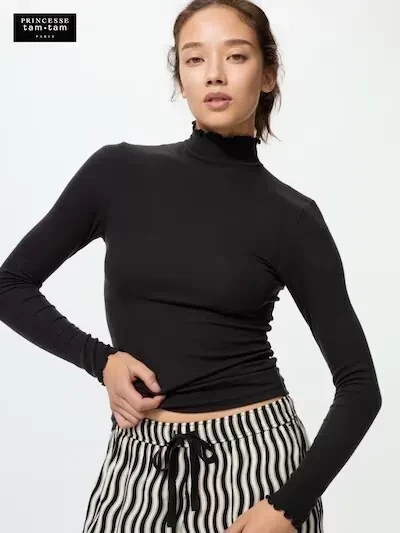 PRINCESSE tam tam 系列推出的超保暖 Heattech 羊絨混紡羅紋高領 T 恤