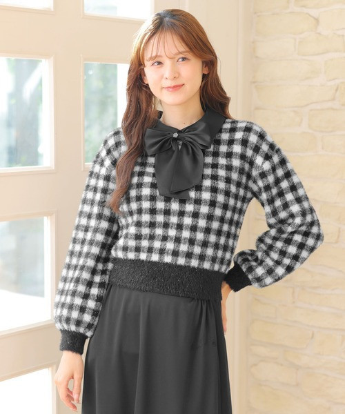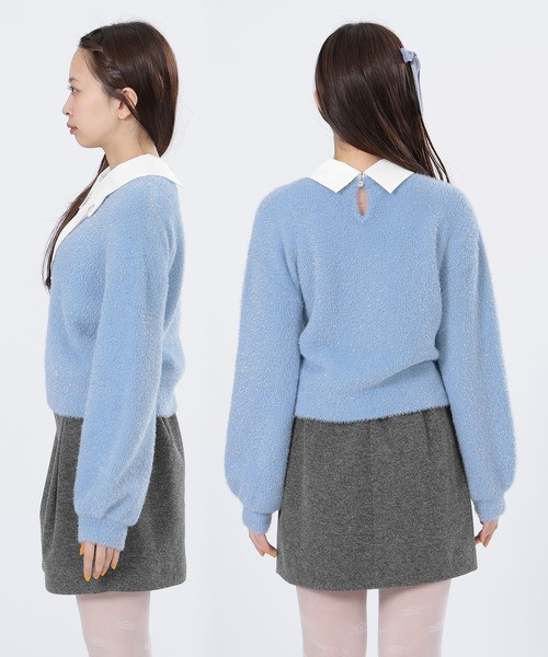 日本MARY QUANT亮片絲帶毛絨套頭衫