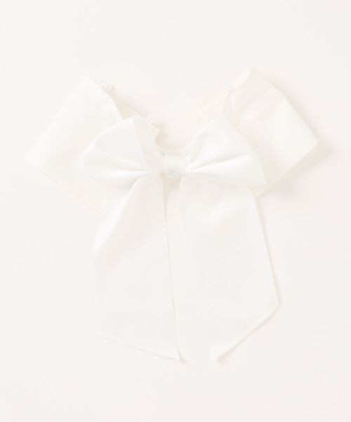 大號緞帶胸針為整體造型增添女性柔美氣息。