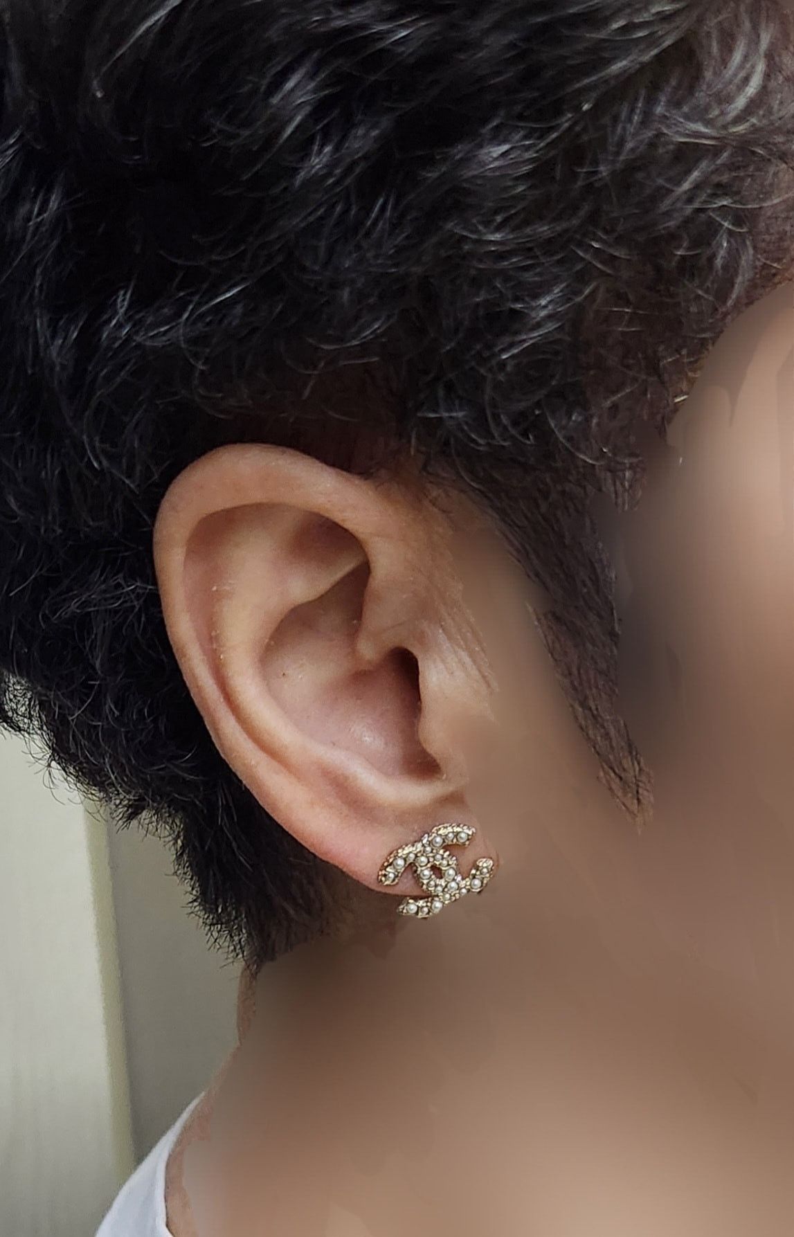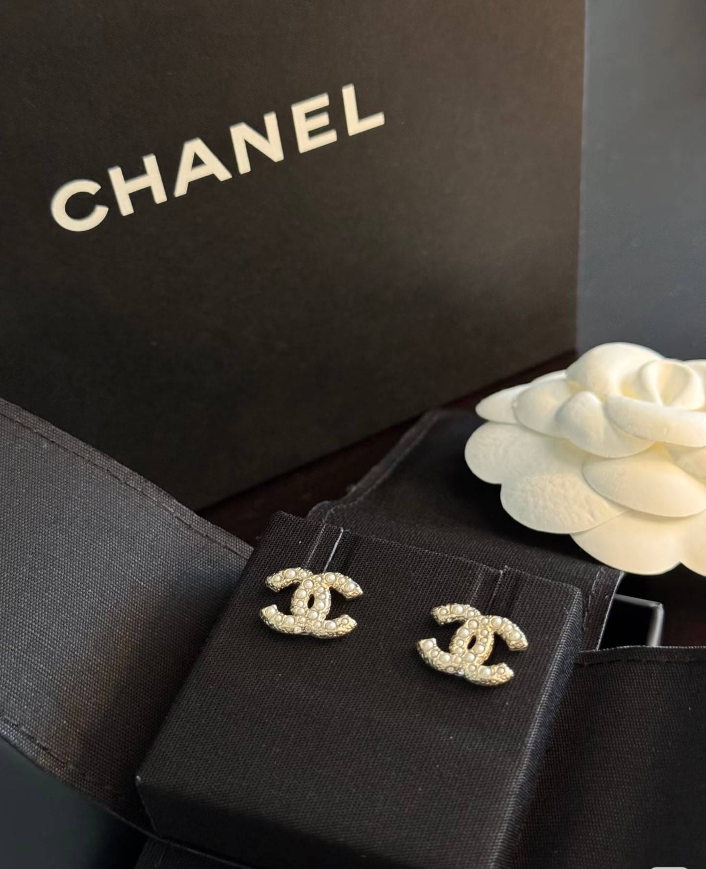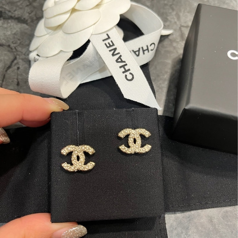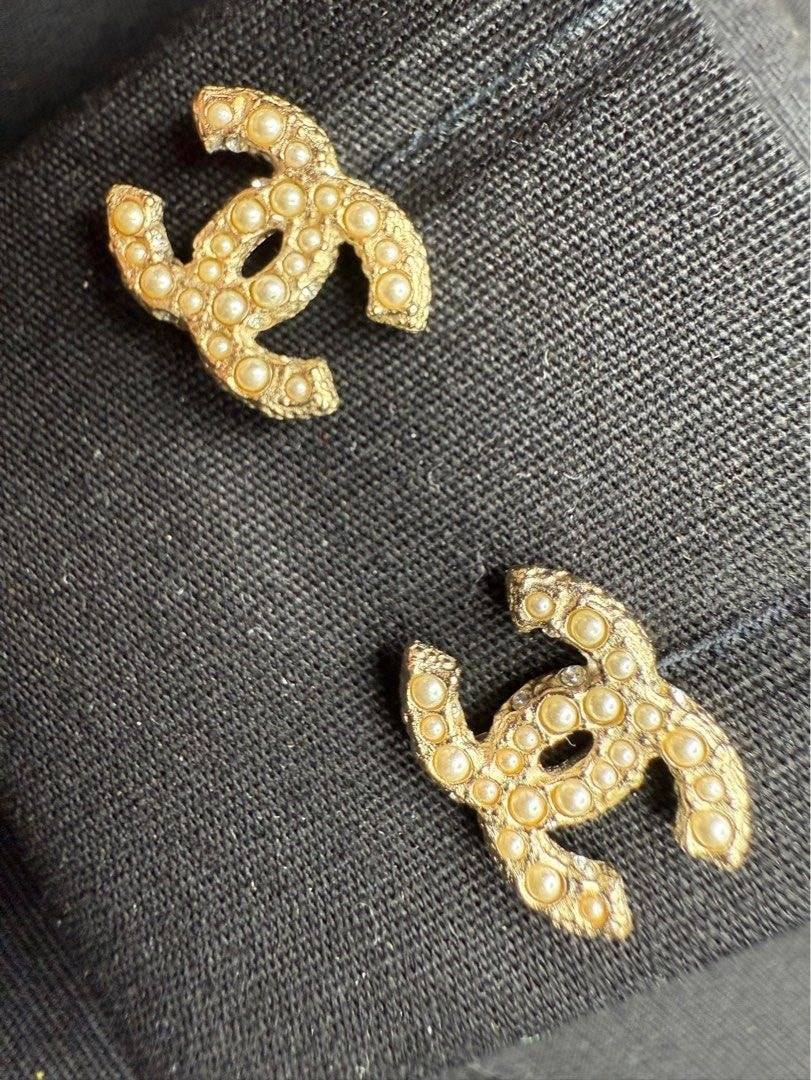 現貨香奈兒Chanel鑲嵌有珍珠和水晶水鑽雙C耳環