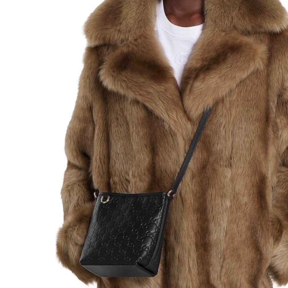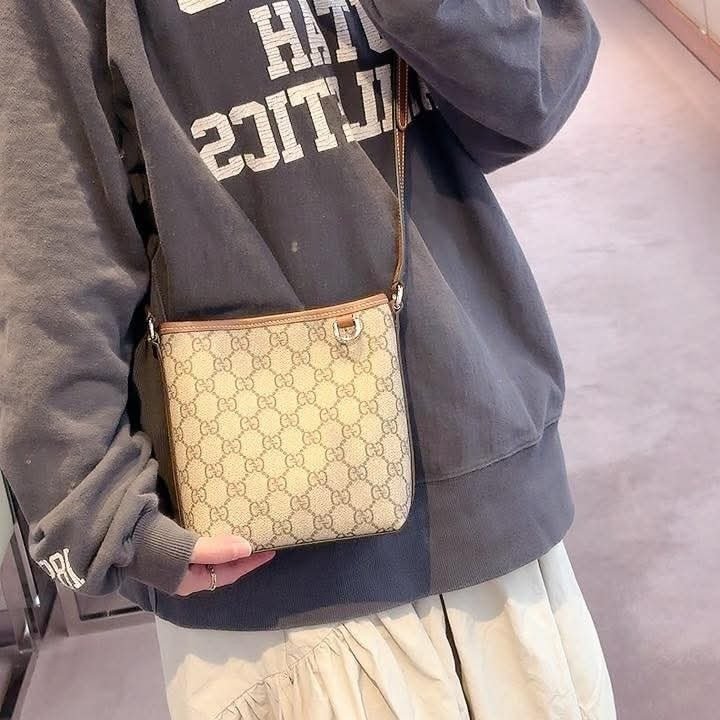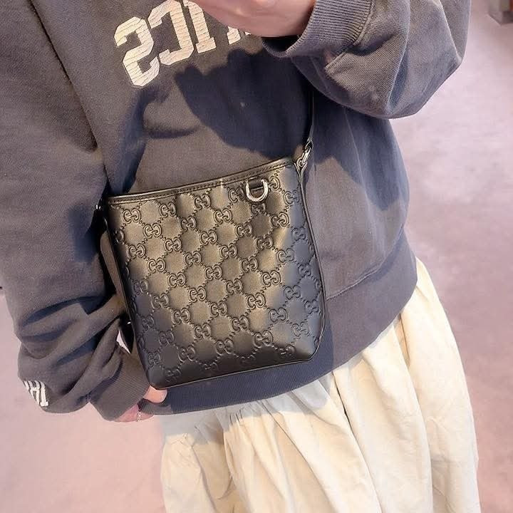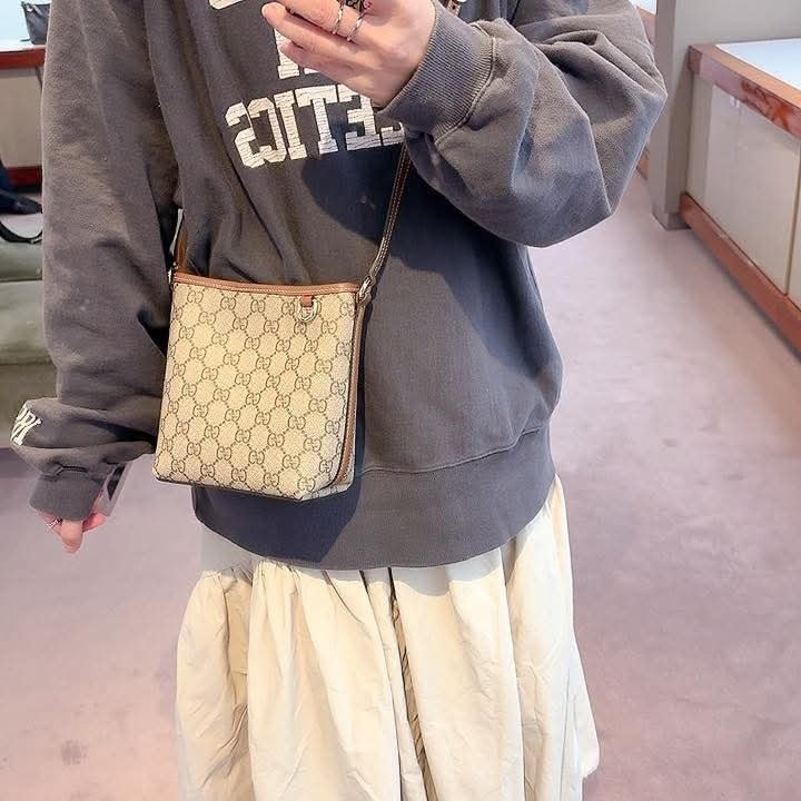 日本 Gucci GG Emblem經典老花 斜挎小水桶包