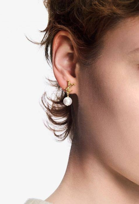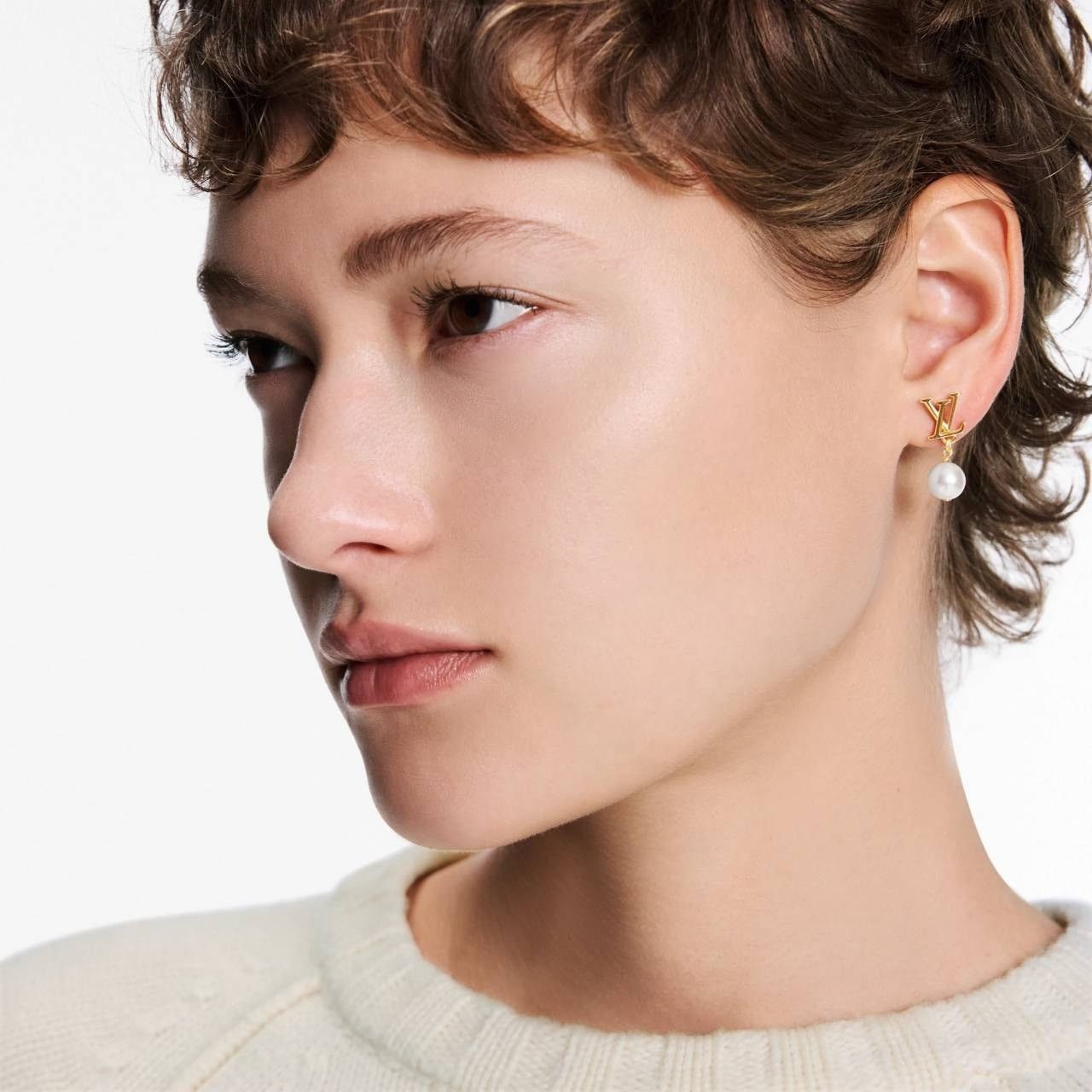 這款LV Iconic Louisa耳環糅合經典路易威登標誌和珍珠的亮麗美態。珍貴的珍珠象徵愛與純潔,而精緻設計將閃亮的白色樹脂珍珠垂掛在拼湊成品牌字首的金色飾面耳釘上。耳環輕巧易戴,更綻放脫俗的動人光芒。