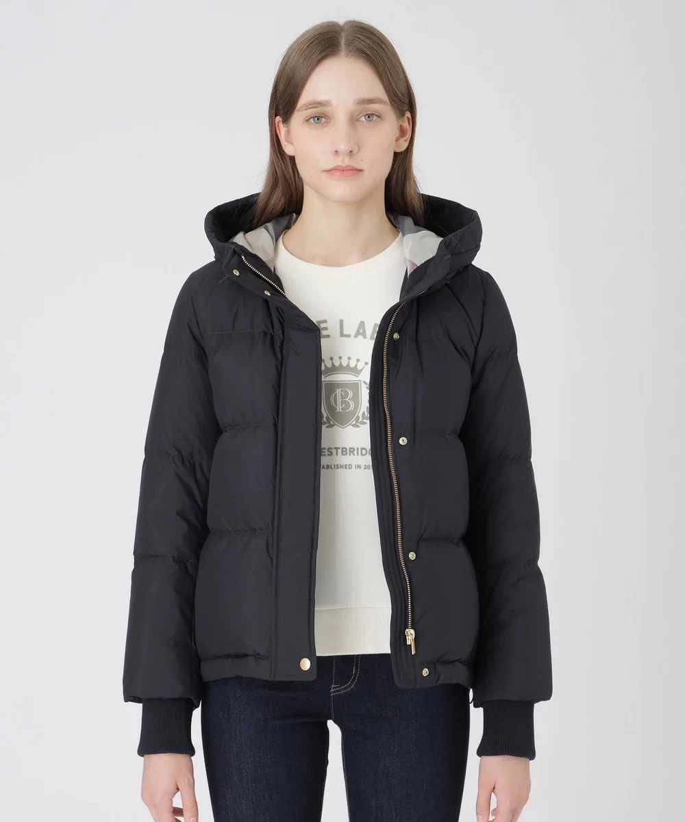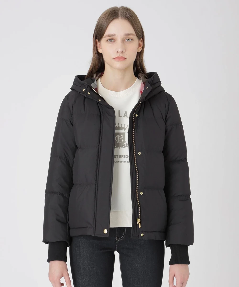 日本 BLUE LABEL 高光澤桃色塔夫綢短款羽絨外套