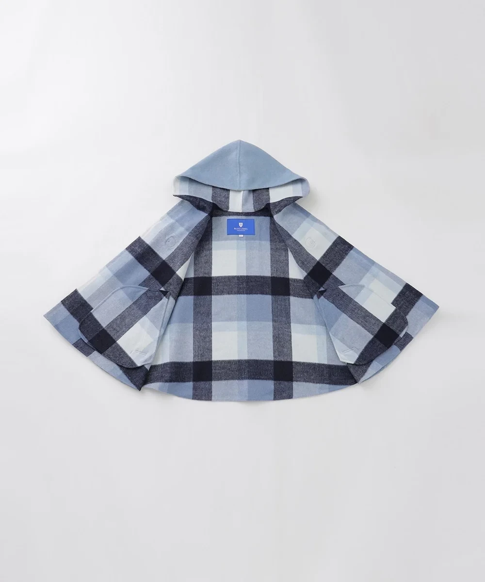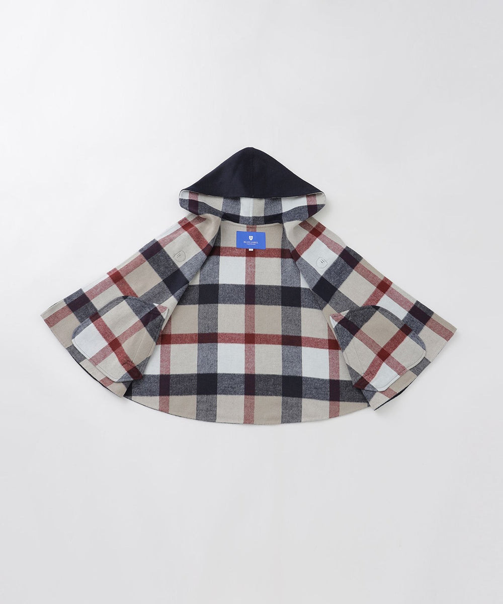 ◆可愛的斗篷式外套,背後飾有 Crestbridge 格紋圖案。
