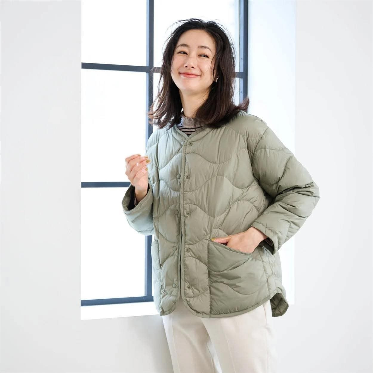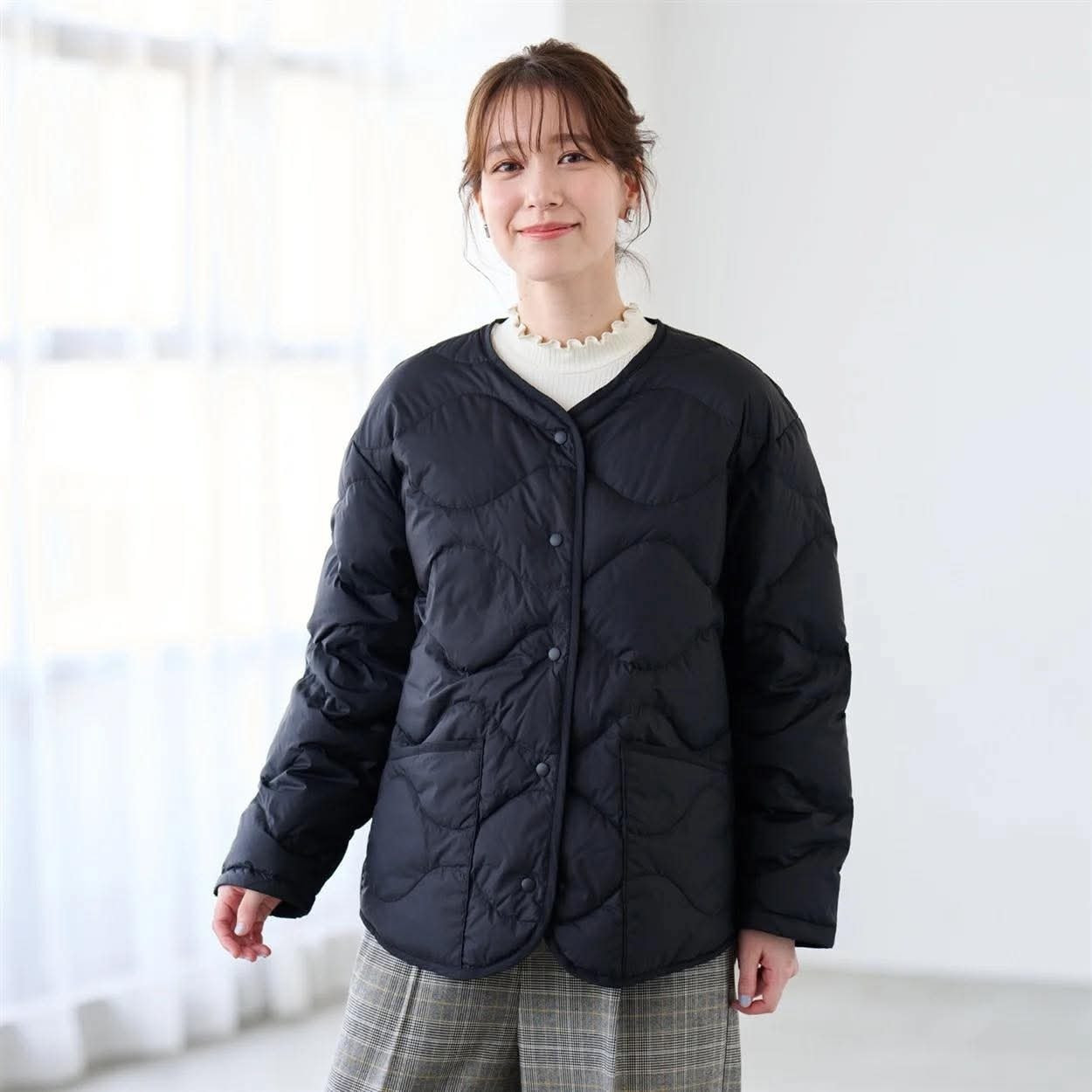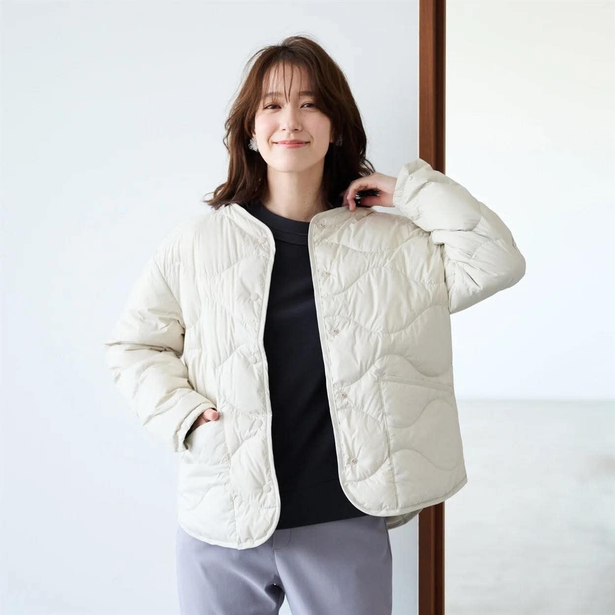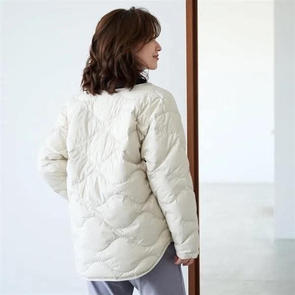 日本波浪線絎縫可水洗無領輕羽絨外套