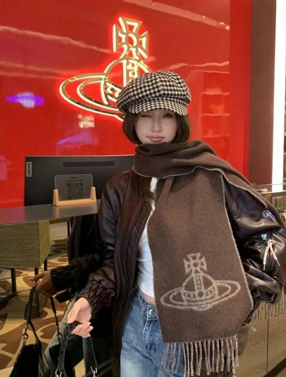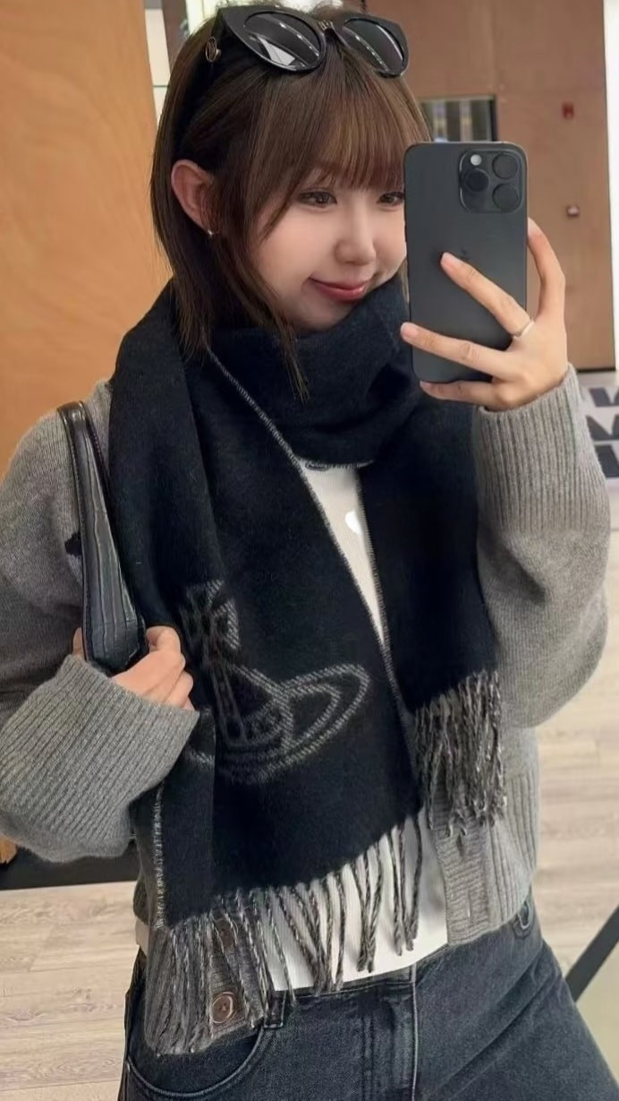 日本Vivienne Westwood大LOGO雙面圍巾