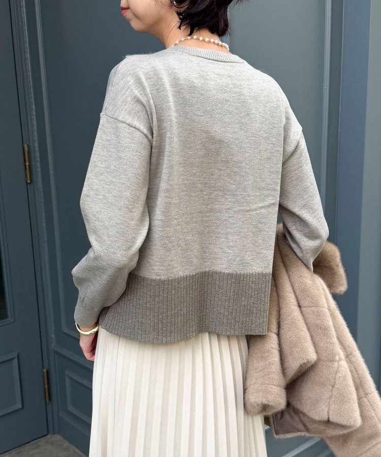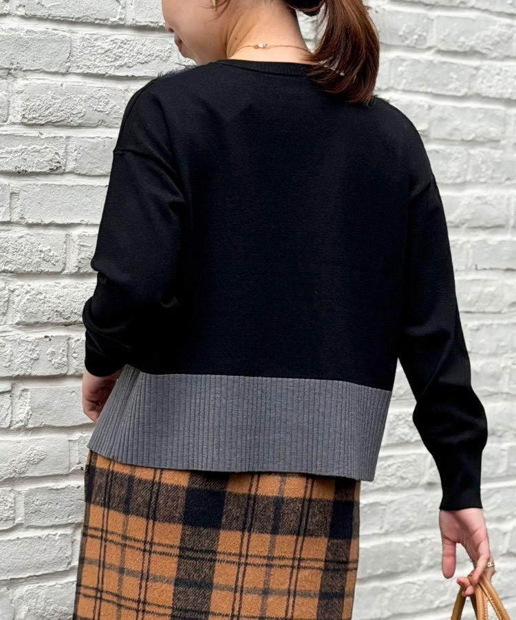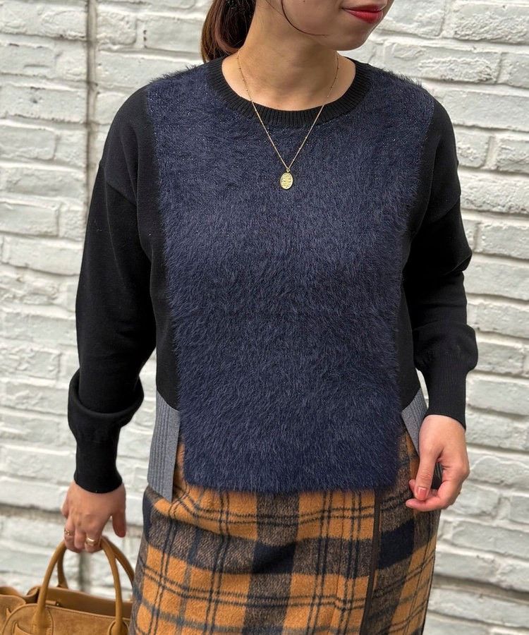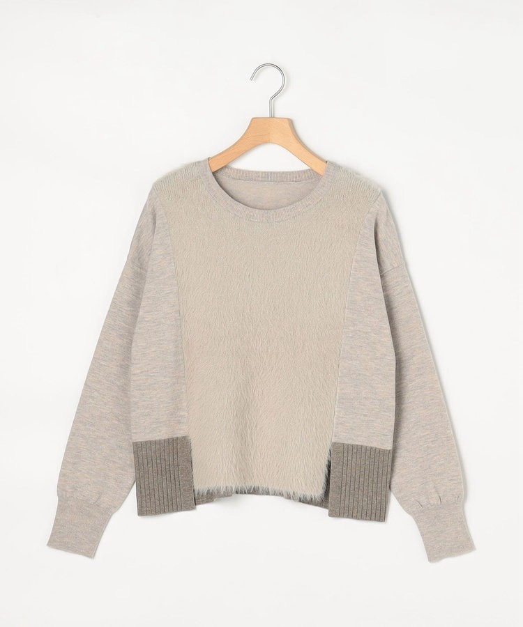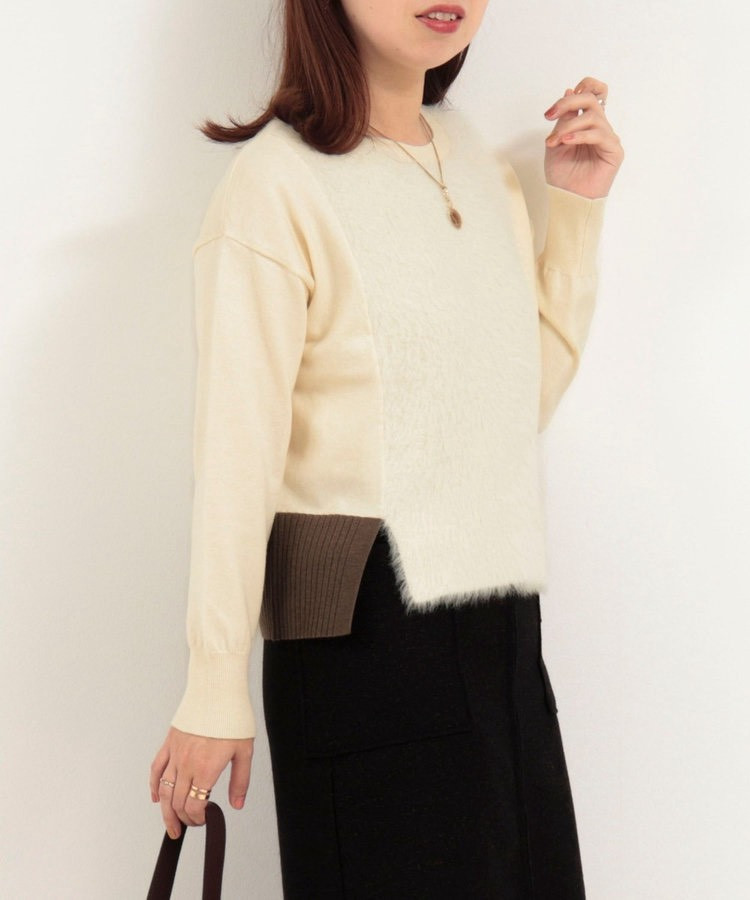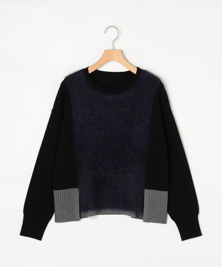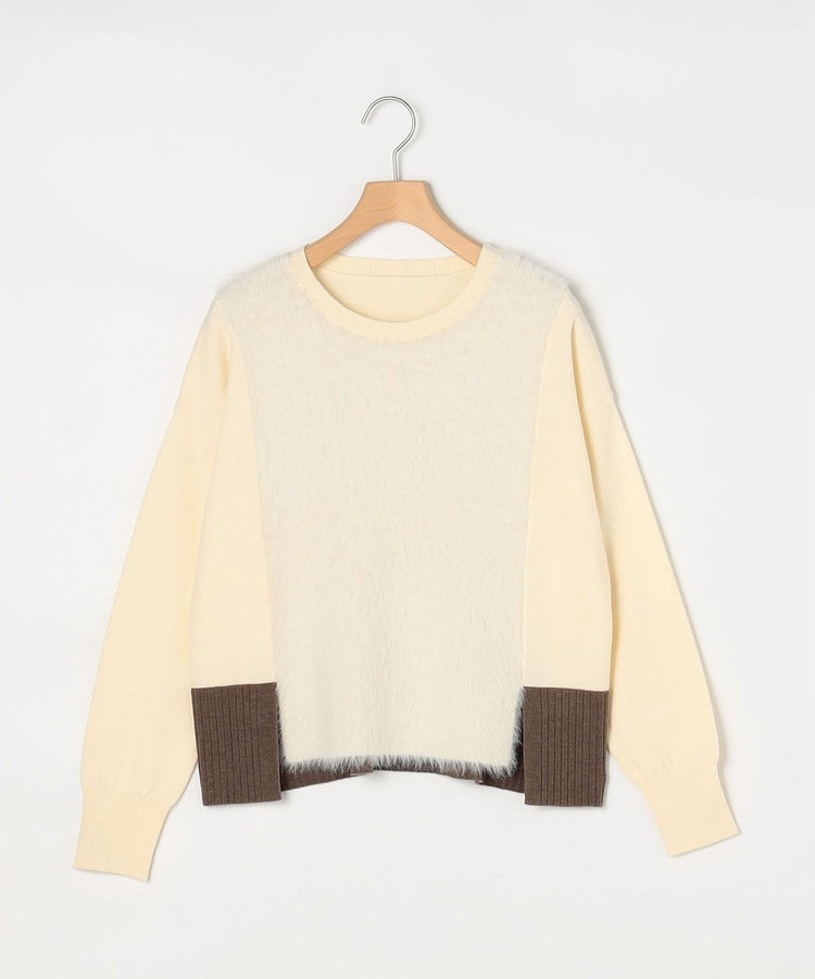 日本NOLLEY'S MALL 拉美羽毛切換雙色套頭針織衫
