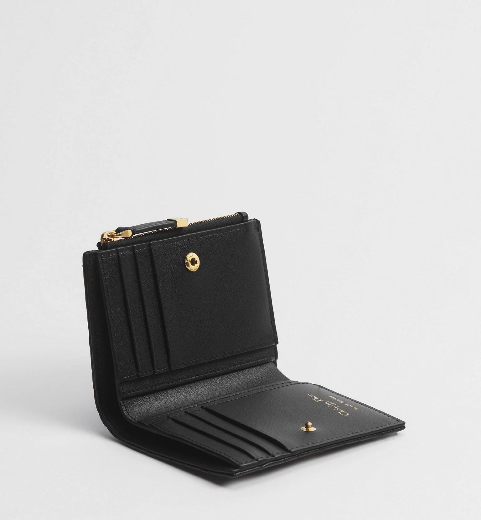 DIOR Caro Dahlia 籐格紋小牛皮對折短夾