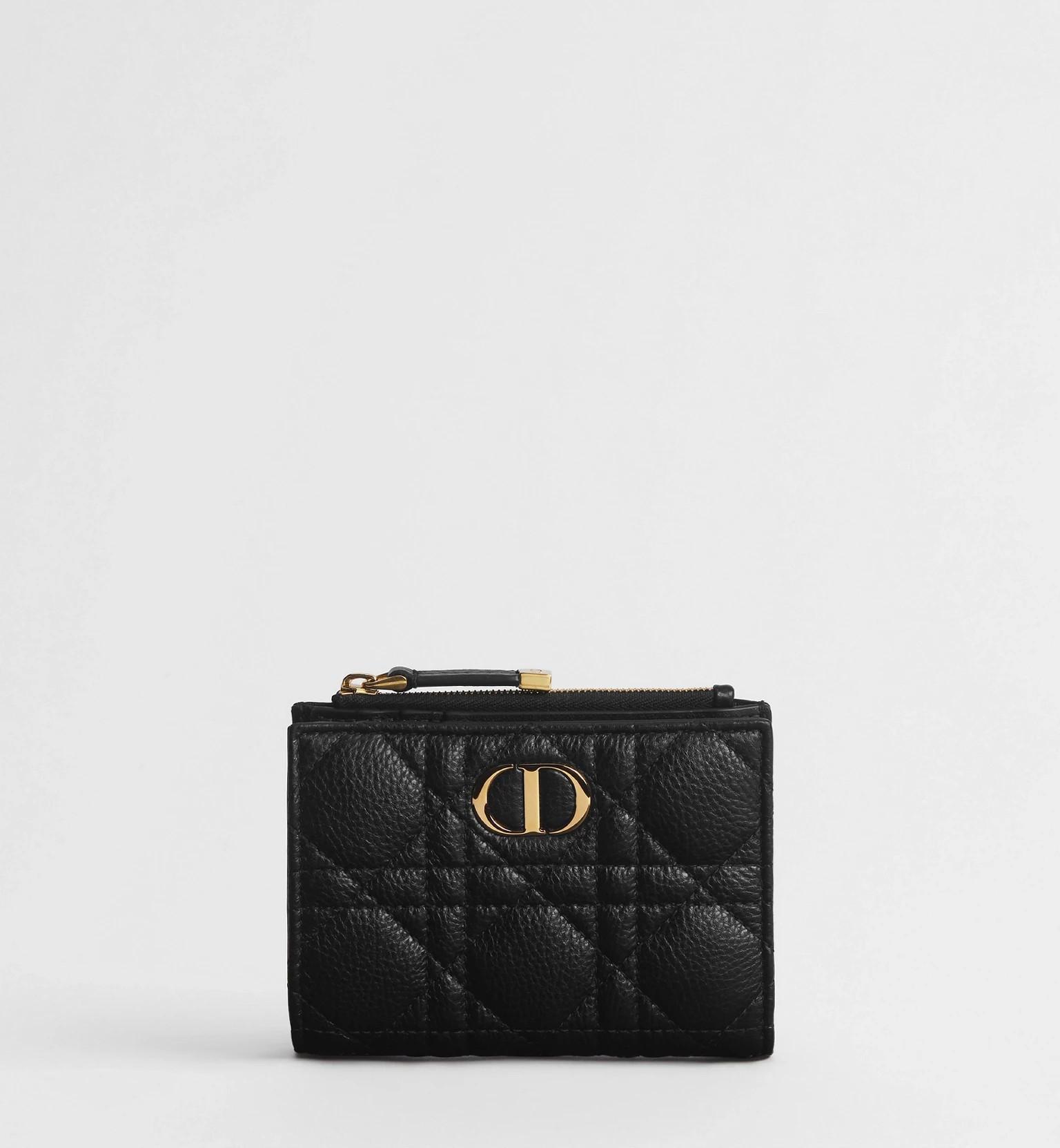 這款 Dior Caro Dahlia 錢包以時尚風格演繹經典的 Cannage 籐格紋縫線。