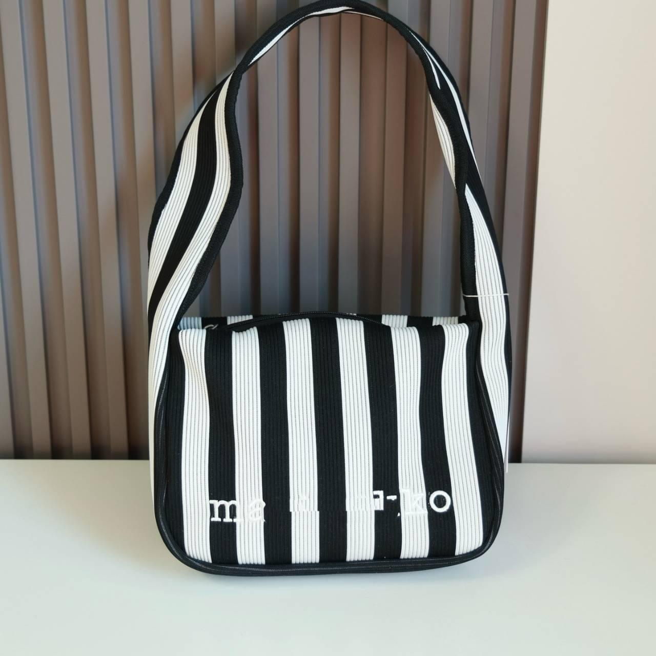 採用具有羅紋厚度和紋理的針織材質製成的單肩包。