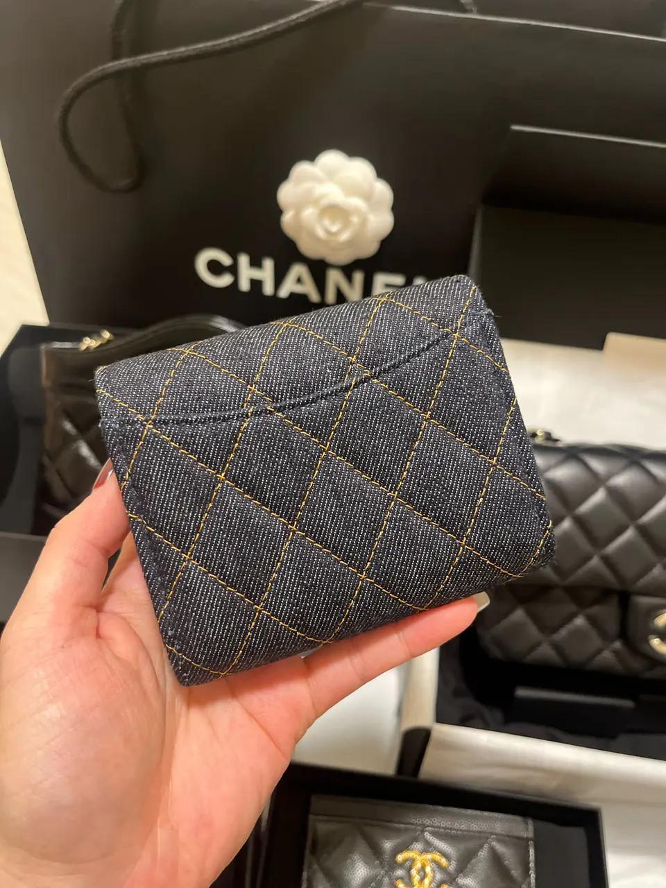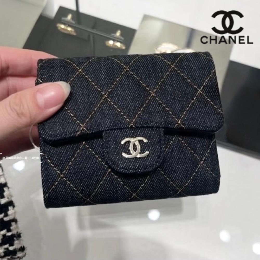 CHANEL 香奈兒牛仔布三折短夾(售價已折)