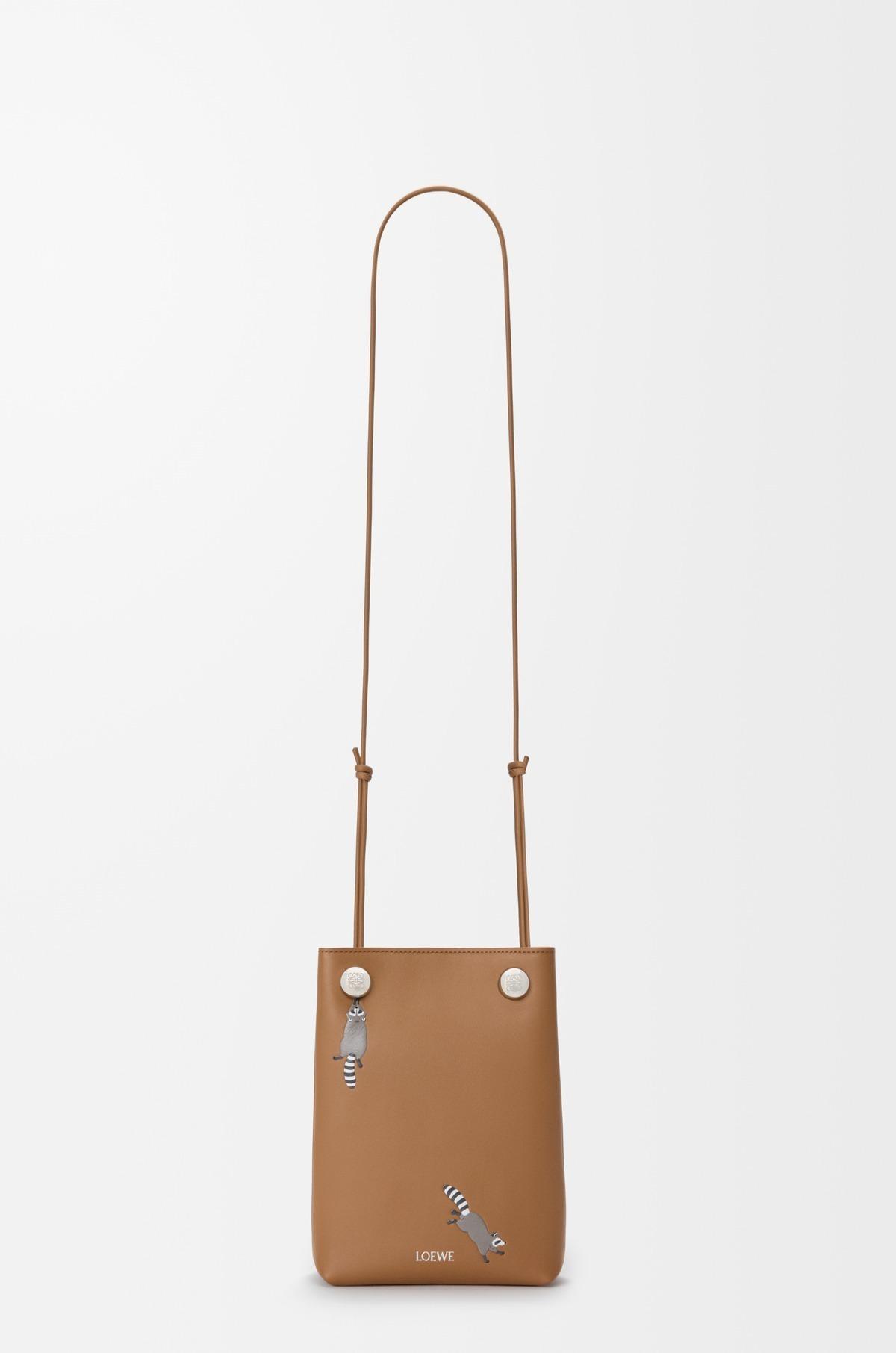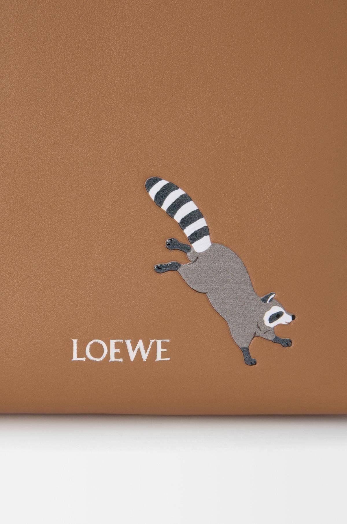 這款手拿包採用納帕小牛皮製成,飾有浣熊圖案印花。它採用